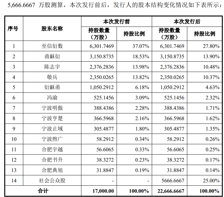 截至招股书签署日,至信衍数直接持有公司37.07%的股份,并通过甬龢衍和宁波煦广间接控制公司18.87%的股份,合计控制公司55.94%的股份,为公司的控股股东。