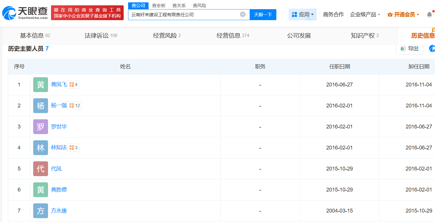不过,国家企业信用信息公示系统查无云南好来建筑,而之名称相近的企业云南好来建设工程有限责任公司历史主要人员中并无杨胜科,而宁波吉文金属科技有限公司历史主要人员中也无杨胜科,该企业现任总经理为柳明杨,此前为高歌。