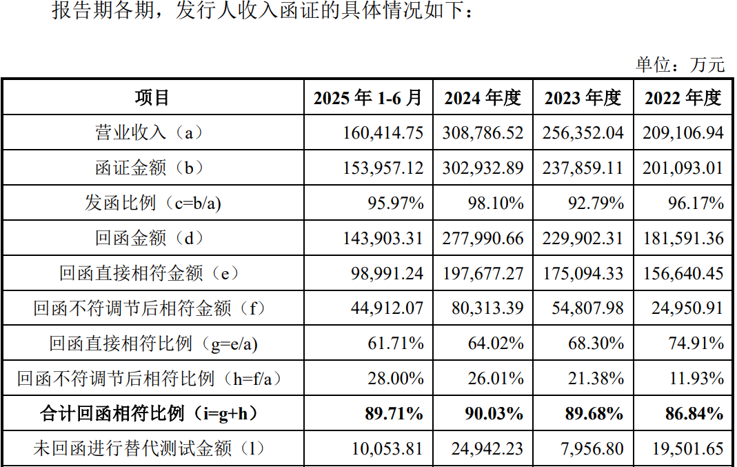 问询函显示,保荐结构对发行人客户函证收入时,收入函证的回函不符和未回函的比例较高,报告期内,公司发函金额共895,842.13万元,未回函金额为62,454.49万元,回函不符金额达204,984.35万元,占发函金额的比例为22.88%,回函不符金额及占比逐期增加。
