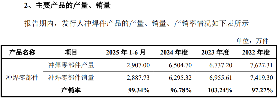 另外,发行人的产品产销存不合逻辑。招股书显示,公司2023年冲焊零部件产销率为103.24%超过100%。即公司产品的销量大于该年度的产量,不会新增产品库存,换言之,2023年产品库存不会多于2022年。