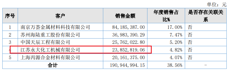 招股书披露,公司对中国化学主要对其下属子公司中国成达工程有限公司、东华工程科技股份有限公司、赛鼎工程有限公司、中国五环工程有限公司等进行销售,而上述客户中,五环工程曾存在行贿案件,成达工程和赛鼎工程均曾失信。