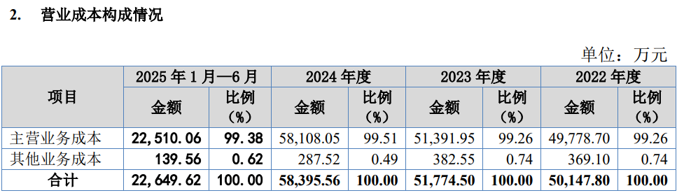 报告期内,中国化学为公司最主要客户,2024年、2025年上半年均为第一客户,对应的销售金额约分别为1.73亿元、1.73亿元,占比分别为21.23%、54.20%,最新一期超过50%。