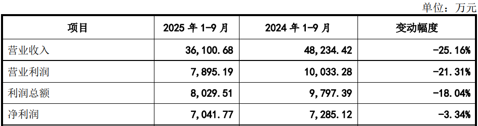 在公司收入连续增长后,最新业绩的2025前三季度,收入出现了同比25%的下滑,同时,净利润出现了微幅下降。