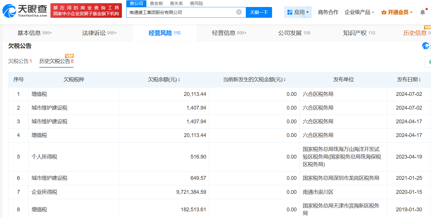 天眼查显示,南通建工涉及司法案件3,631起,作为被告2,666起,涉案金额约8.79亿元,纳入被执行人300多次,被执行总额约3.21亿元,该企业曾出现了40多起环保违规被罚57.5万元,曾拖欠税款超千万。