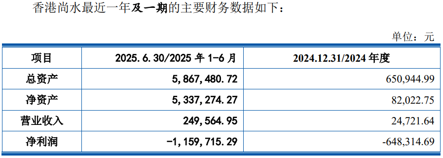 招股书显示,香港尚水、非洲尚水、日本尚水均未从事经营业务,香港尚水最近一年及一期共亏损180.80万元,而深圳润羿、南通尚水由于成立2025年均未披露财务数据。