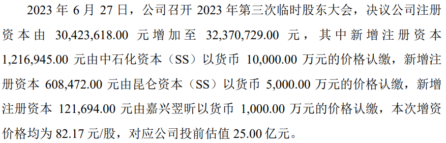 另一客户晶科能源间接利用其控股长鑫柒号(控股比例为83.36%)于2023年5月,以5,000万元投资款认购发行人73.4870万股新增股份,持有公司2.42%股份,增资价格均为 68.04元/股,对应发行人投前估值20亿元。