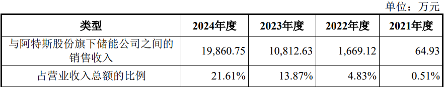 发行人与阿特斯阳光电力集团股份有限公司(688472.SH,以下简称“阿特 斯”,其控股股东亦在美国纳斯达克证券交易所上市)子公司于2021年8月签署第一份业务合同,开始进行储能BMS业务合作。2021年12月,发行人便引入其为股东,阿特斯以1000万元入股发行人、持有发行人1.69%股份。