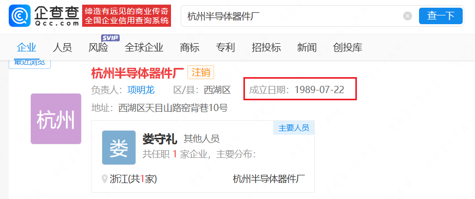 招股书显示,实控人徐剑虹曾于1983年9月至1992年7月,曾就职于杭州半导体器件厂,历任生产技术员、生产线长、研究室主任、车间主任;而根据企查查显示,该企业设立于1989年7月,较其开始的履职时间完了近6年。