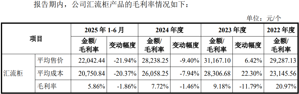 发行人毛利率下滑主要受产品价格影响。报告期内,公司的储能BMS模块产品、高压箱产品、汇流柜产品等主要产品售价均出现了整体下滑,各类产品毛利率均波动下滑,同时,报告期内,公司一体化集成母排CCS及线束产品的毛利率分别为 16.36%、14.66%及 2.17%、7.83%,整体呈下降趋势。