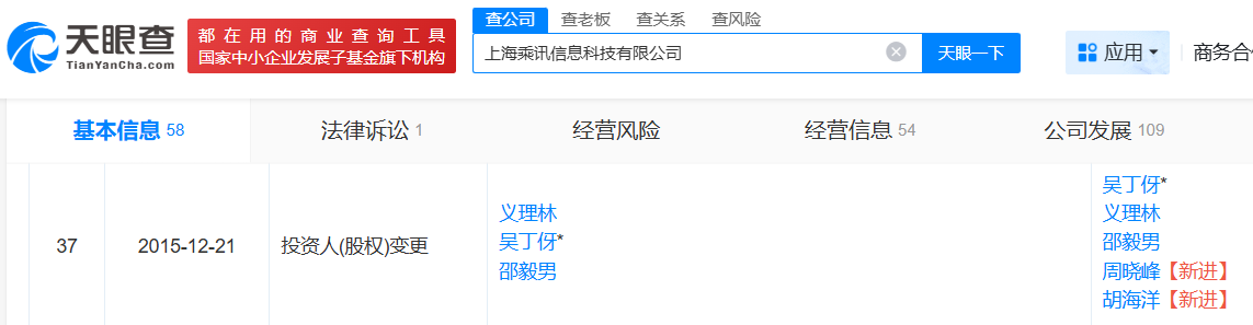 天眼查显示,胡海洋在2015年12月入股了上海乘讯,彼时还在安捷伦科技履职,而在上海乘讯履职的时候又投资设立了发行人,直到2018年1月,才退出上海乘讯股东身份。