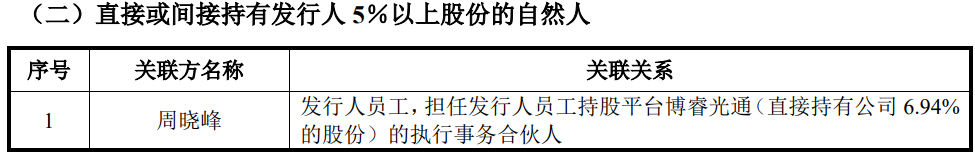 同时,上海乘讯的创始股东邵毅男现为发行人的研发总监,为公司的核心技术人员、其间接通过员工持股平台持有发行人1.87%股份,与胡海洋一起入股的周海峰为发行人员工,为持股平台博睿光通(直接持有公司6.94% 的股份)的执行事务合伙人,间接持有联讯仪器5%以上股份,均是2018年1月退出股东身份。