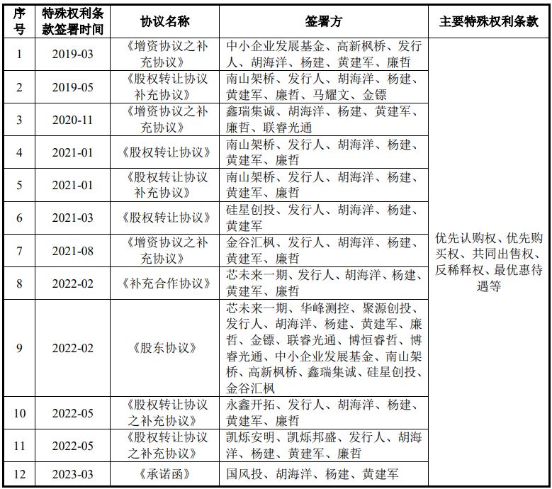 报告期内的2022年,胡海洋、黄建军、杨建、廉哲四名高管进行了减持套现,同时引进外部投资者还签署了对赌协议,但招股书称对赌已解除。
