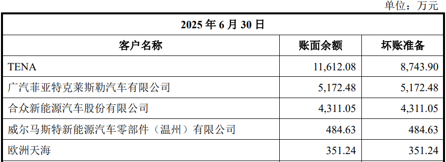 截至2025年6月,发行人坏账准备飙升至27,443.48万元,其中,按单项计提坏账准备23,030.22万元,其大的坏账准备客户为TENA,其坏账准备达8,743.90万元。