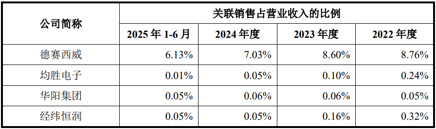同行中,关联销售占比均较低,最高的德赛西威占比不足10%。
