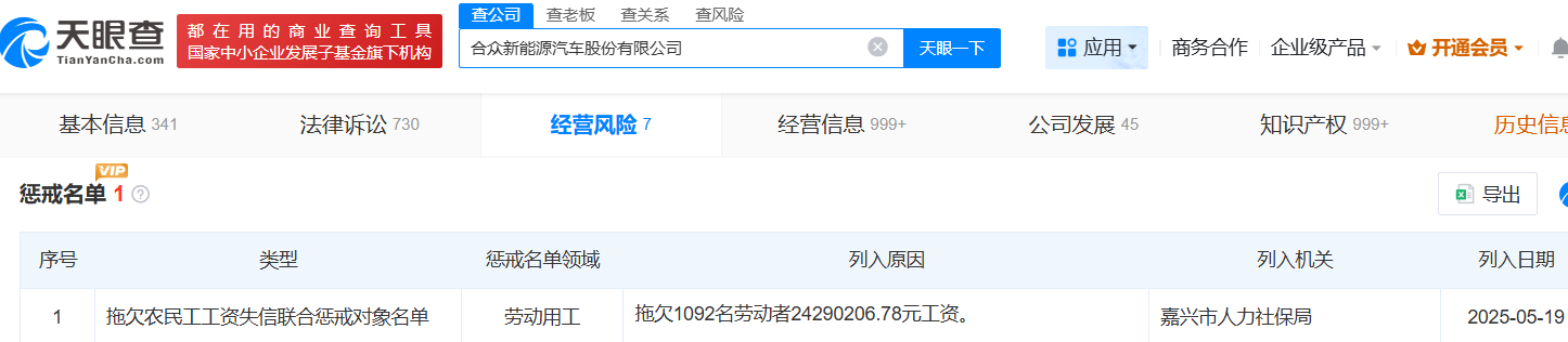 同时,其拖欠上千名农民工工资2,400多万被嘉兴市人力社保局列入惩戒名单,嘉兴市税务局公布其拖欠税款300多万。