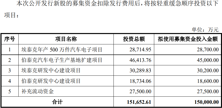 芜湖埃泰克汽车电子股份有限公司(以下简称“埃泰克”或公司)首发申请将于1月20日上会,此次计划募资20亿元,拟在上交所主板上市。