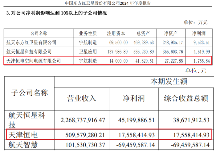 而据中国卫星2024年年报显示,该年度天津恒电实现收入为50,957.93万元,净利润为1,755.84万元,发行人披露的收入较其多出6,124.53万元、净利润较其多出151.40万元。