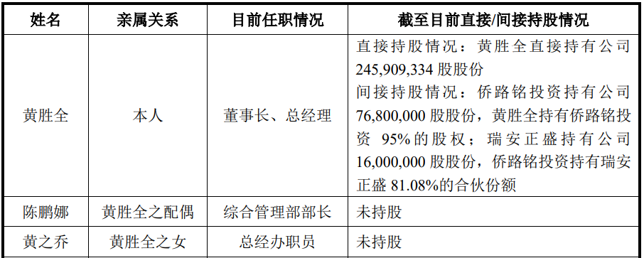 值得一提的是,黄胜全的配偶陈鹏娜及女儿黄之乔均未持有发行人任何股份,陈鹏娜综合管理部部长,黄之乔担任总经办职员。