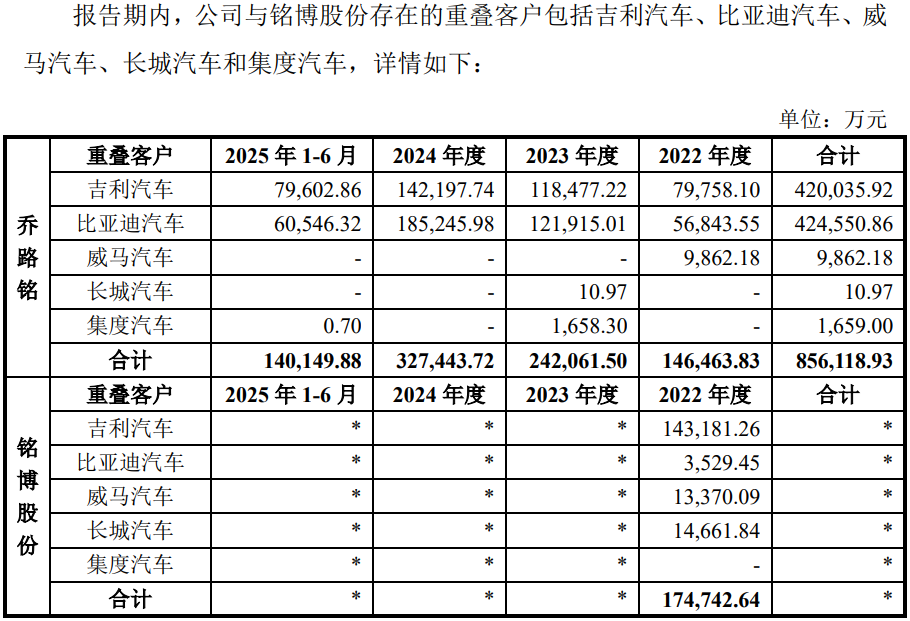 除了与实控人控制的宁波双慎共用多家供应商外,发行人与关联方铭博股份还共用交易额在200万以上的供应商8家,同时,存在5家重叠客户。