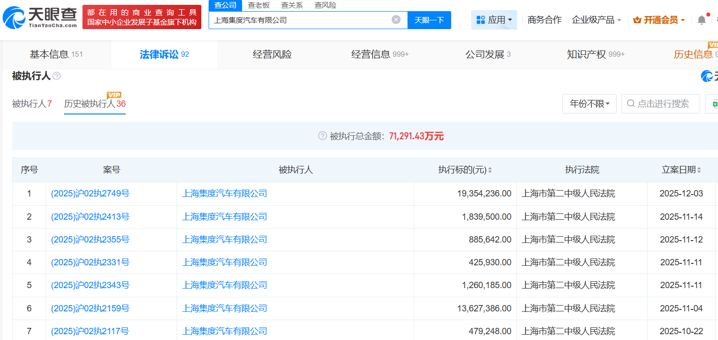 招股书显示,发行人2023年开始与集度汽车合作,当年实现销售收入1,658.30万元,2024年集度汽车暴雷并被列入被执行人,截至2024年末,对集度集团的应收账款余额为87.36万元。