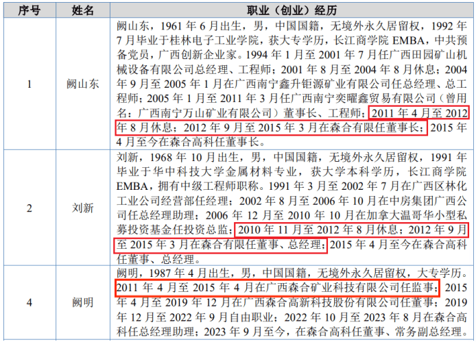 发行人表示,2012年,由于阙明和黄伟均有个人事业,无法全职参与森合有限的经营,阙山东决定引入合作伙伴刘新,与刘新共同运营森合有限。