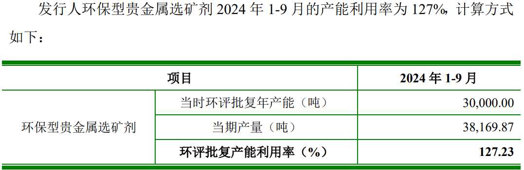 募集资金项目“年产8万吨环保型贵金属提取剂建设项目(一期)”建成 后,公司将新增4万吨环保型贵金属选矿剂产能,消化问题受到了北交所的问询。