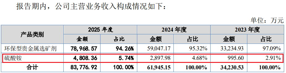 值得注意的是,公司生产的产品中硫酸铵及氰酸钠属于双高产品,报告期内,公司硫酸铵累计销售8,701.94万元,不过招股书并未披露氰酸钠的销售情况,招股书披露,公司自2024年12月2日起,将不再对外销售氰酸钠,公司生产的氰酸钠已经并将在未来持续全部用于自身生产、研发。