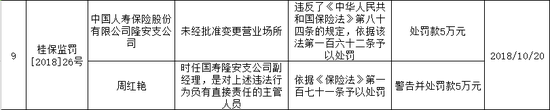 国寿三家支公司被罚35万元:未经批准变更营业场所