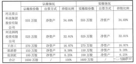 这家保险中介机构,注册资本为1600万元,共有5个股东。其中,河北商云科技持股34.69%,为第一大股东;河北圳?鸿公司持股32.81%,为第二大股东;还包括三个自然股东:王亦工、郭群群、张剑虹,各持股16.87%、9.38%、6.25%。