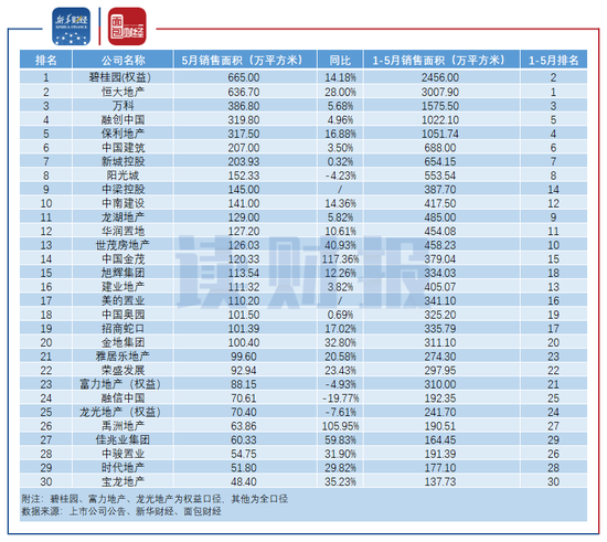 华润置地、新城控股(32.300, 0.03, 0.09%)则是唯二出现负增长的房企,5月销售额同比分别下降0.4%和9.48%。从1-5月累计销售额来看,二者实现销售额790.3亿元和714.55亿元,分别排名TOP30房企中的第9名和第11名。