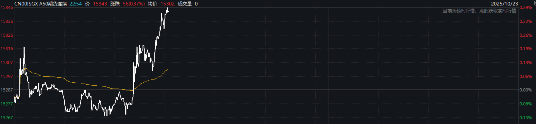 富时中国A50指数期货盘中也直线拉升转涨,目前涨幅在0.3%左右。