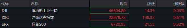 当地时间10月23日,美股三大指数开盘涨跌不一,盘初反复震荡后走高。截至发稿,道指涨0.03%,纳指涨0.61%,标普500指数涨0.32%。