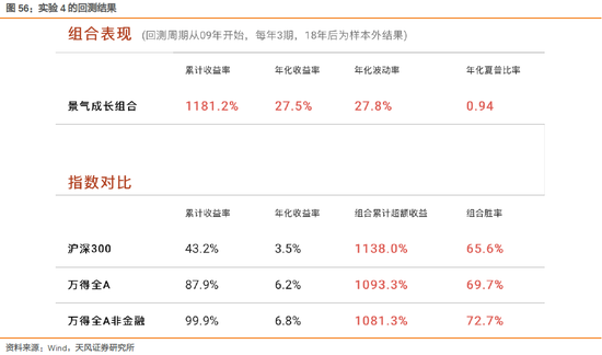 最后,我们用【天风策略ROE选股模型】(具体网址:tf-strategy.com,登录密码欢迎联系我们,或联系对口销售)中的景气成长组合来验证报告前三部分中的逻辑和结论。