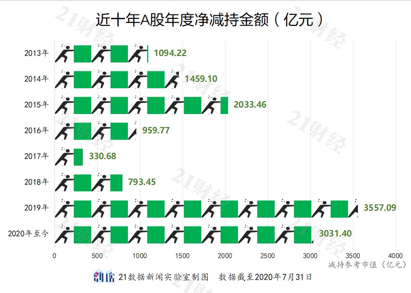 自2007年起,A股已连续13年出现净减持。2019年A股大涨,减持额也创出历史新高。如无意外,今年还将继续净减持这一趋势。