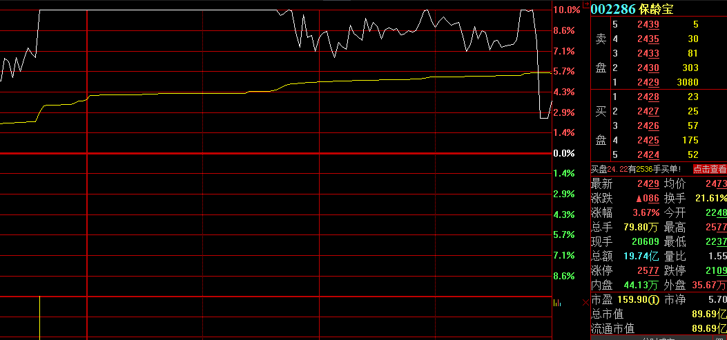 8月13日,保龄宝早盘低开高走,午后再次强势涨停,不过,临近尾盘,保龄宝突然炸板,截至收盘,保龄宝涨幅收窄至3.67%,全天振幅达14%。值得注意的是,自7月1日以来,31个交易日,保龄宝的涨幅接近200%。