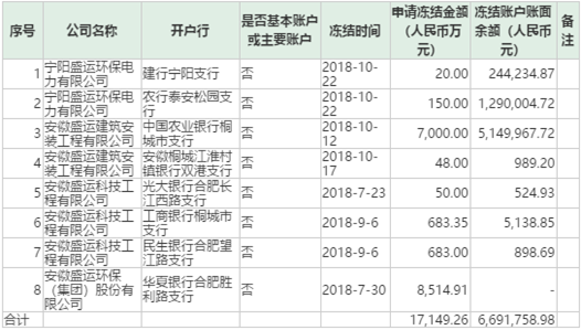 截止2018年11月6日,盛运环保被冻结账户情况如下: