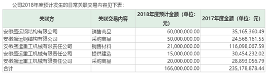 2018年4月28日盛运环保发布《关于2017年度关联交易补充确认暨2018年度关联交易预计的议案》称,为了保证公司正常生产经营、节约成本,将与盛运重工及盛运钢构之间产生持续的、经常性的关联交易。