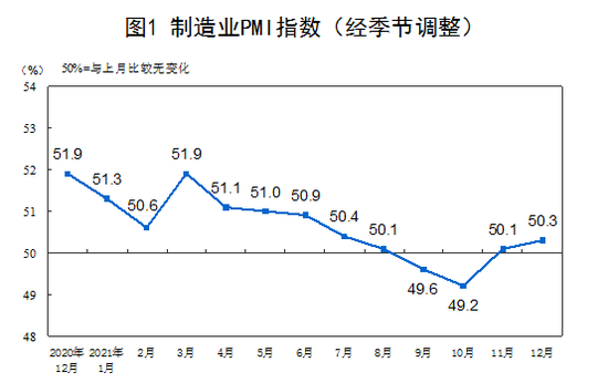 - 12月中国制造业PMI为50.3% 比上月上升0.2个百分点2021-12-31