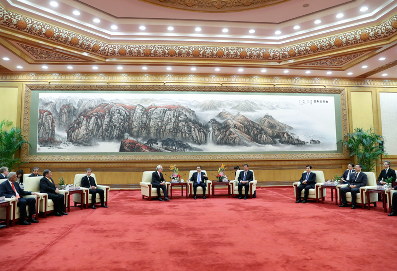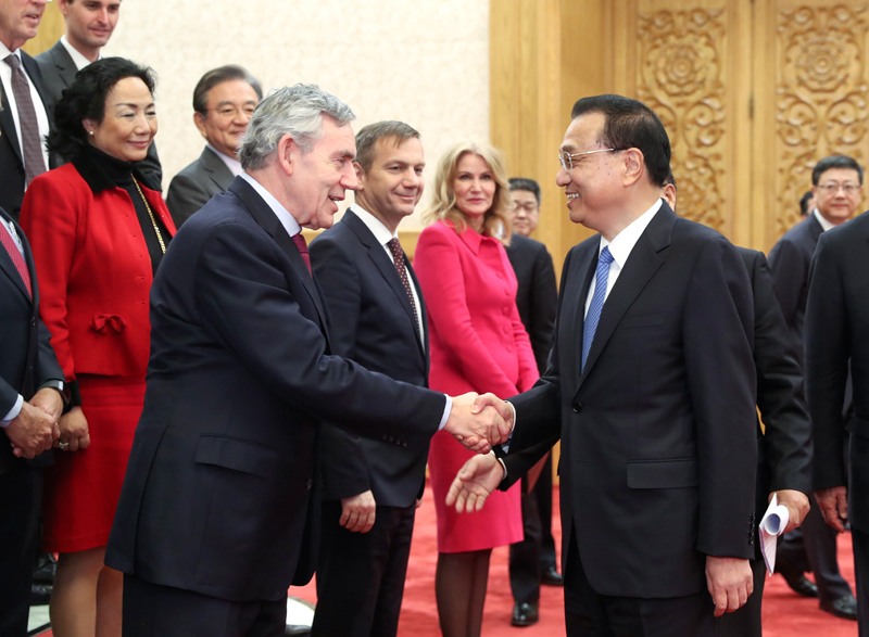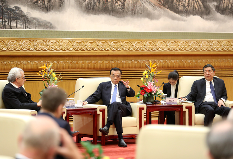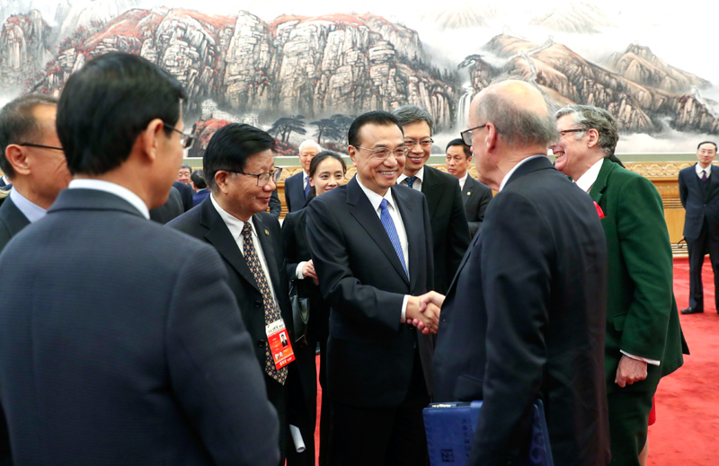 国务院总理李克强12月17日下午在人民大会堂会见第三届“读懂中国”国际会议代表并同他们座谈。30多位全球著名前政要、战略家、企业家和学界知名人士参加。
