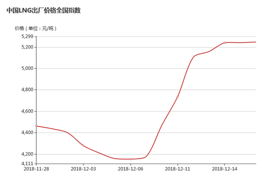 国内液化天然气出厂价涨至5247元 较12月6日上涨26%