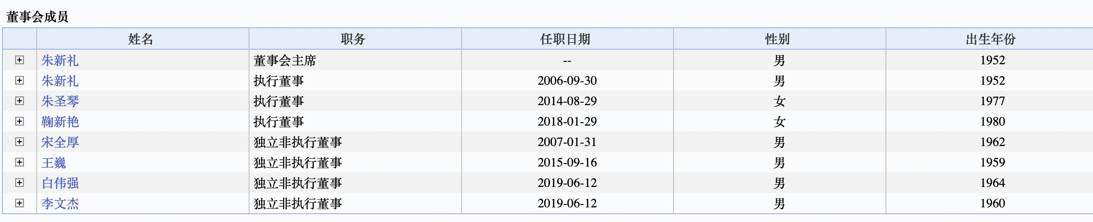 汇源果汁董事会成员