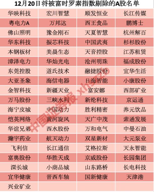 同时,宝丰能源、红塔证券、中国卫通、海油发展、丸美股份、移远通信、国联股份等7只个股被纳入。剔除和纳入生效时间均为12月20日收盘后。