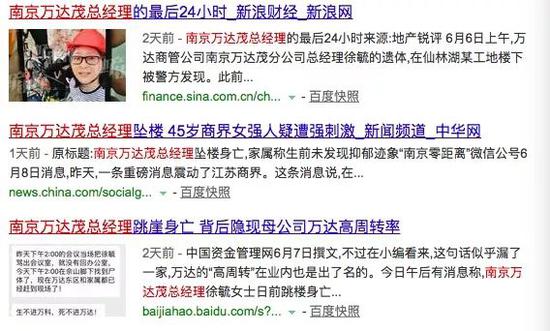 6月6日,有网友通过一则微信截图爆料,称南京万达茂总经理因为在开会时被万达南京公司总经理责骂,随后在栖霞山上自杀,其遗体已经在佘山脚下找到。