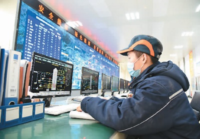 近日,济南能源集团供热企业提前升温蓄热,保障居民安全温暖过冬。图为1月6日,该集团所属济南热电腊山分公司工作人员通过“智慧供热”系统对辖区供热和供热设备运行等情况进行监控。