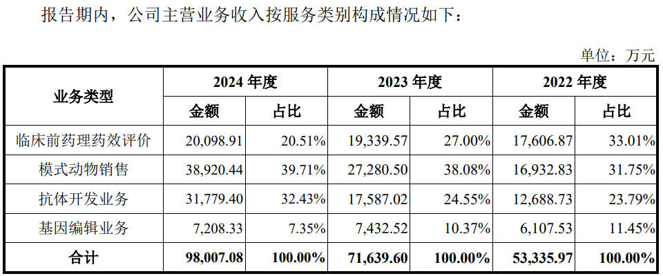 靠基因编辑模式小鼠起家的百奥赛图再次靠“卖老鼠”实现收入大幅增长,主营业务收入中,增长较快的业务收入主要来自于模式动物销售和抗体开发业务,该两项业务前者靠基因编辑大/小鼠出售,后者是公司“千鼠万抗”业务。