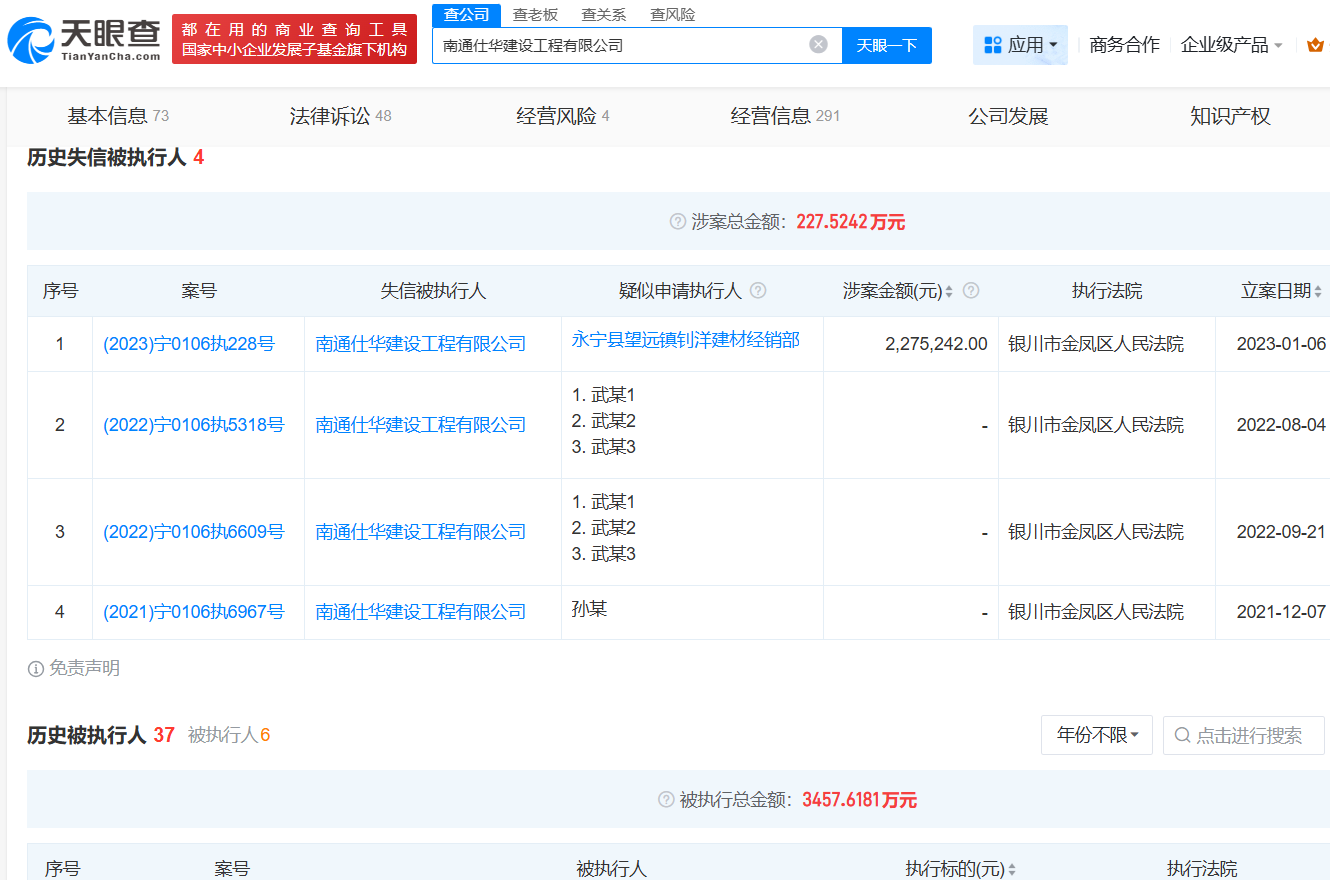 天眼查显示,该企业涉及司法案件88起,其中,作为被告72起,涉案金额3,801.86万元,被执行37次,被执行总额3,457.62万元,4次“失信”,失信执行金额227.52万元。该企业还存在3起环保违规。
