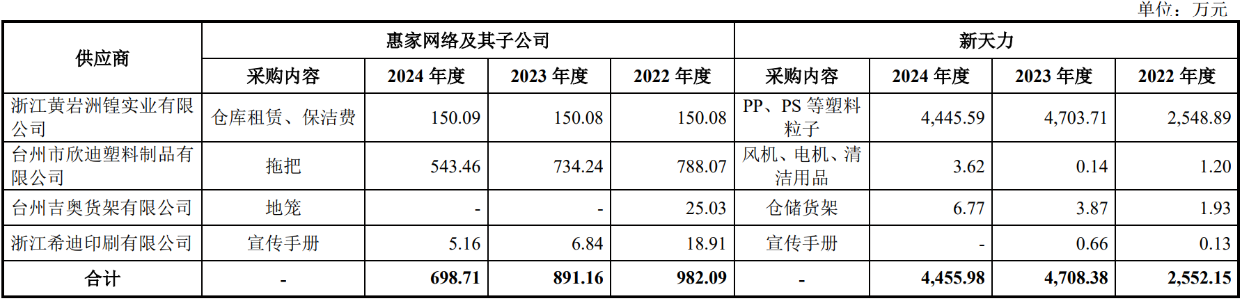 10万以上以上采购额的,公司与惠家网络及其子公司存在浙江黄岩洲锽实业有限公司等4家重合供应商。