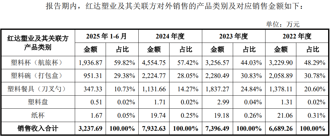 问询函称,红达塑业及其子公司台州市椒江红达塑业有限公司主营业务包括生产和销售一次性塑料杯、打包盒(碗)和纸杯,与公司主营产品相似,两者存在同业竞争。
