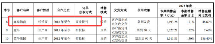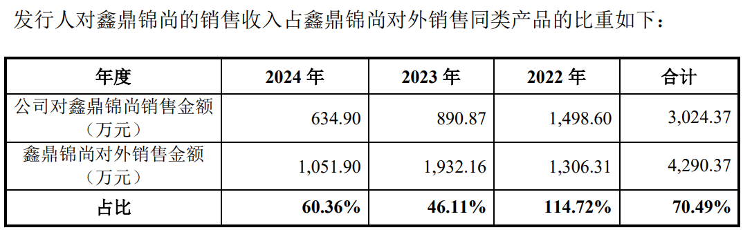 鑫鼎锦尚为发行人最大的经销商,报告期内,累计对其销售金额为3,024.37万元,但显示逐年下滑,期末销售额不足期初的一半。