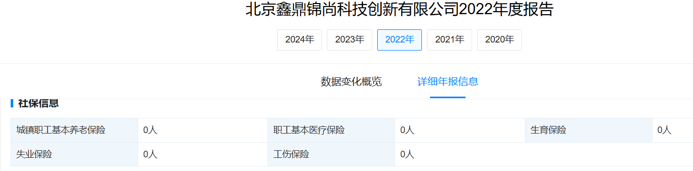 天眼查显示,该企业设立于2020年9月,而公司称2018年便与其合作,根据各年年报数据显示,其参保人数一直为0,